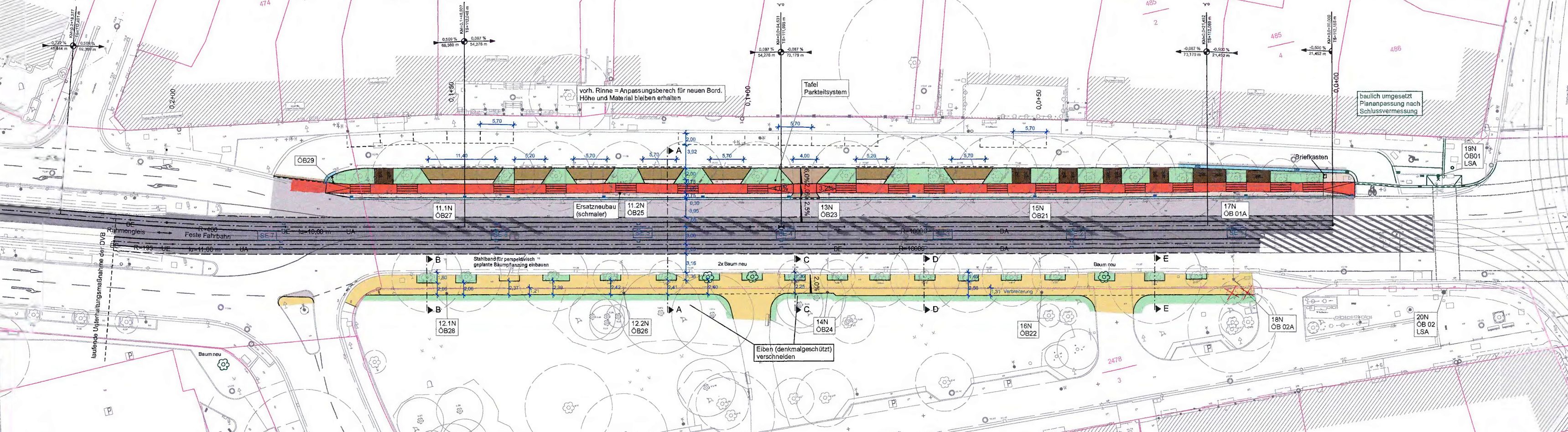Also, weiter warten. Das Querschnittsbild oben ist vermutlich ein älteres Archivbild. So kommt der Umbau doch eher nicht. Und außerdem ist die DVB-Maßnahme auch nur die Halbe Miete auf diesem Abschnitt. Der ganze Rest wurde schön außenvor gelassen. Nunja, unter „Kein-Geld“-Koettnitz wird auch die nächsten Jahre nichts Vernünftiges mehr vorangehen.