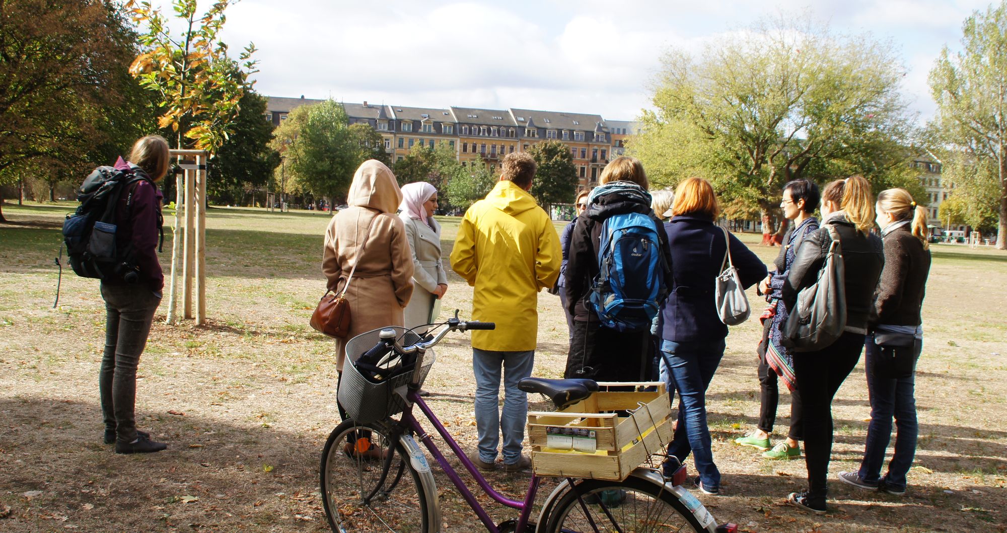 Janna von querstadtein begleitet Lina. Diese Entscheidung wurde aus gegebenem Anlass getroffen. Nach der ersten Stadtführung durch die Dresdner Altstadt im April, sah sich der damalige Stadtführer Mohammed mit Anfeindungen und Hass-Kommentaren im Internet konfrontiert. Im November werden die TeilnehmerInnen des Projekts in einem Empowermentkurs auf mögliche Konfliktsituationen vorbereitet.
