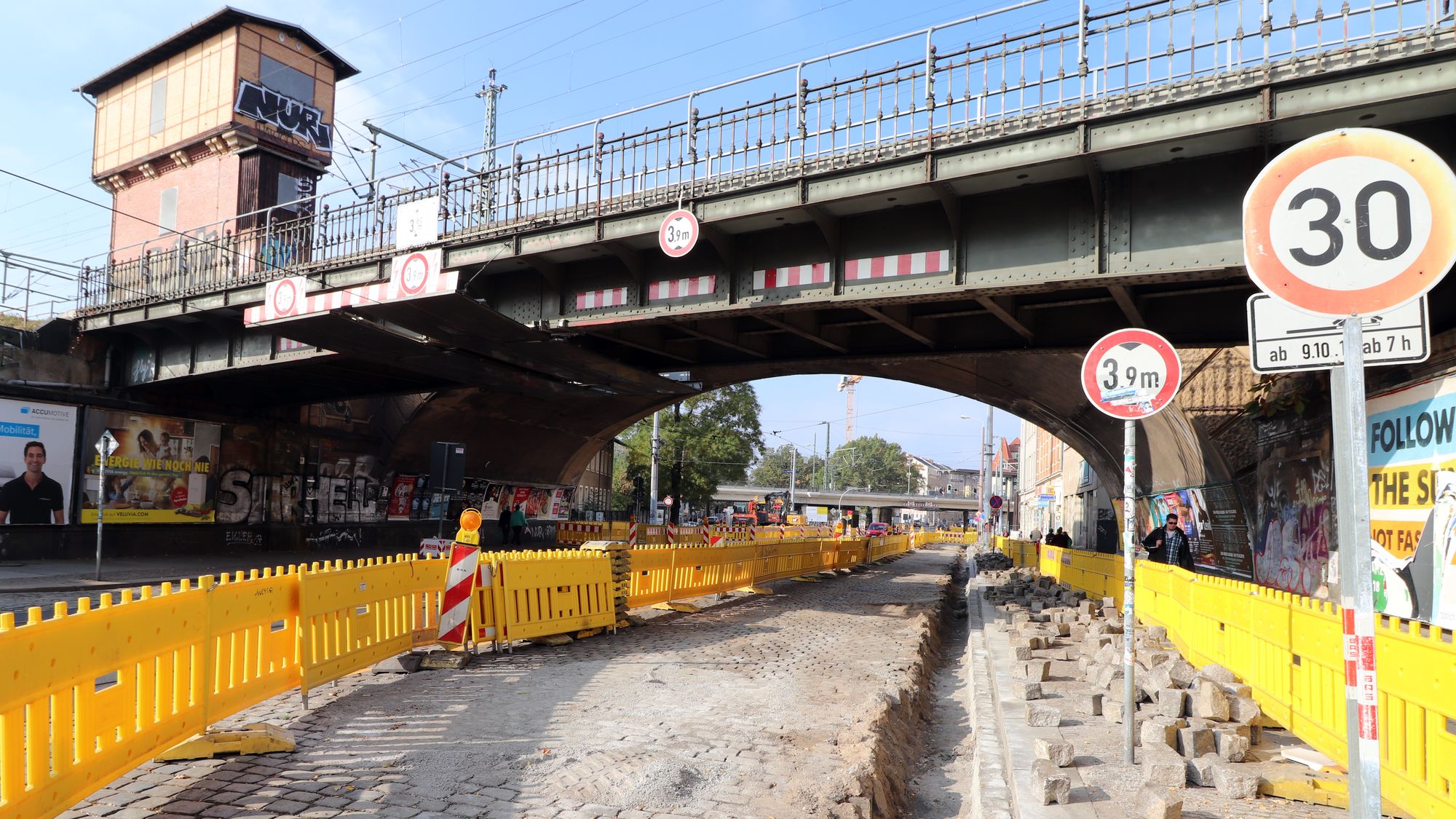 Währenddessen ist die Baustelle am Albertplatz offenbar fast abgeschlossen. Nach dem Marathon konnte heute die Kreuzung in alle Richtungen befahren werden, mit Ausnahme der Linksabbieger-Spur von der Bautzner Straße in Richtung Albertstraße. Heute kommt es wegen der Demonstration „Herz statt Hetze“ noch zu weiteren Einschränkungen.