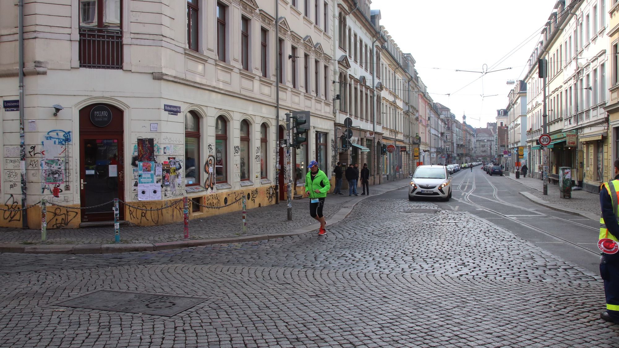 Auch wenn natürlich nicht alle der insgesamt 6832 Teilnehmer die beiden langen Strecken (Marathon und Halbmarathon) durch die Neustadt gelaufen sind, fast 3.000 waren es schon. Immerhin sind allein bei der langen Distanz über die 42,195 Kilometer 966 Läufer bis ins Ziel gekommen. Wie viele davon sich den Fuß auf der Holperpiste Louisenstraße verknackst haben, ist nicht bekannt.
