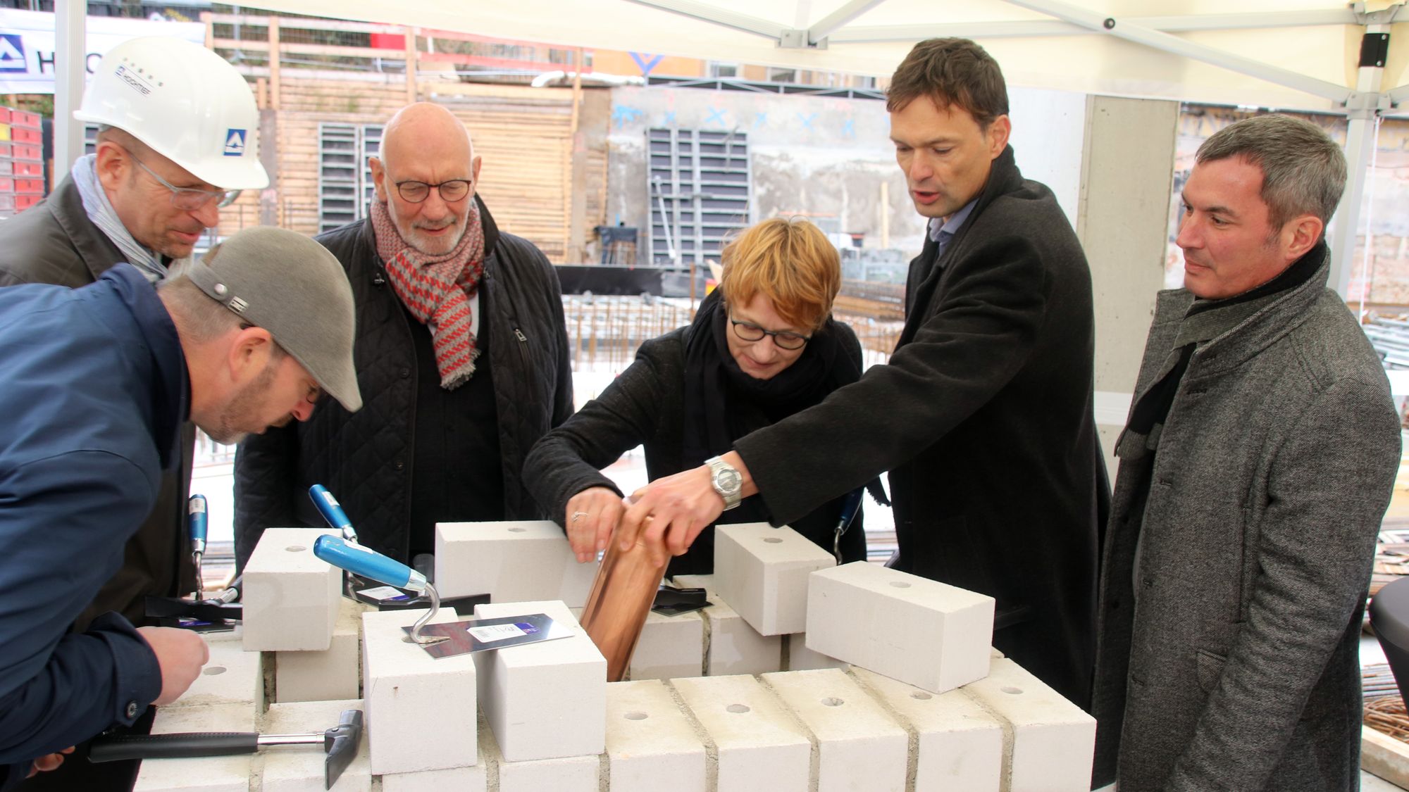 Insgesamt, so Bogen, sei der Neubau auch ein Gewinn für die Anwohner, weil aus einem staubigem lauten Parkplatz ein grüner Innenhof werde. Insgesamt sollen 95 Wohnungen entstehen und sechs bis sieben Gewerbeeinheiten. Der größte Teil der Gewerbefläche sei schon an die Biomarkt-Kette Alnatura vermietet. Wie wichtig der Stadtverwaltung der Neubau ist, wurde dadurch deutlich, dass die Abteilungsleiterin Stadtplanung Innenstadt, Frau Anja Heckmann, bei der Grundsteinlegung mit Hand anlegte.