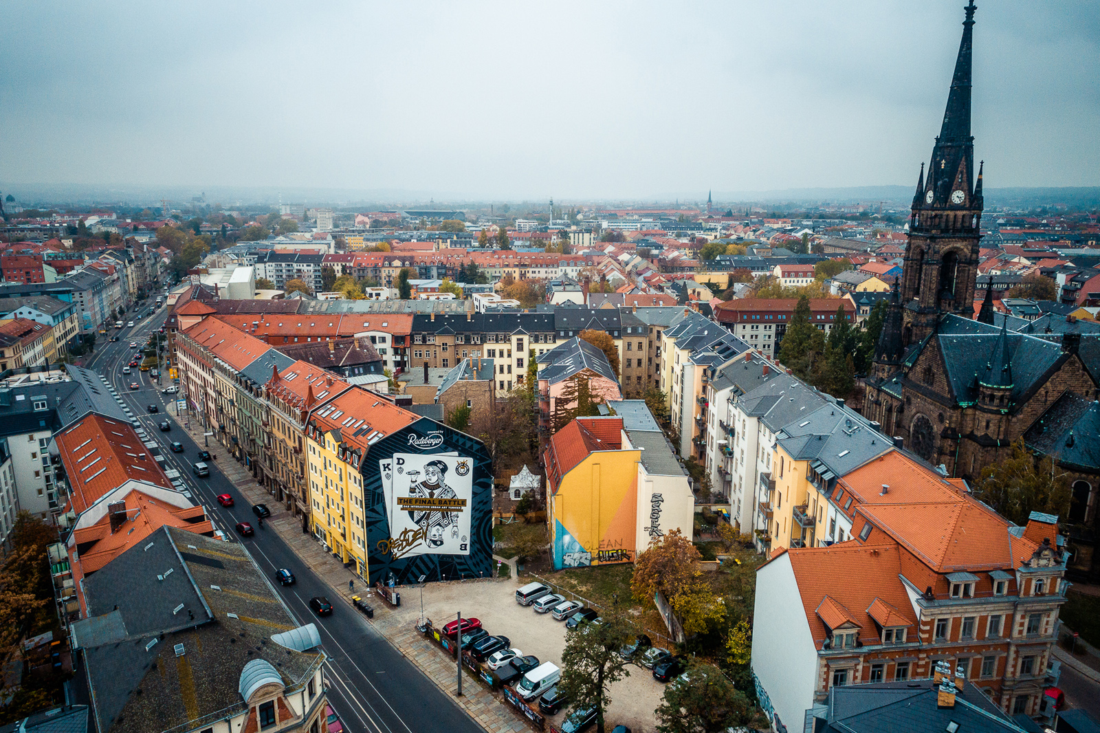 Gestaltet haben auch dieses Bild die Künstler der Gruppe „Slider Bandits“. Wer die Farbartisten mal in Aktion erleben will, muss dann zum Finale in die Reithalle, denn den Vorausscheid Sachsen konnten sie gewinnen. Schöner Erfolg für die Neustädter Künstler, deren Werke hier im Viertel an verschiedenen Ecken zu sehen sind.