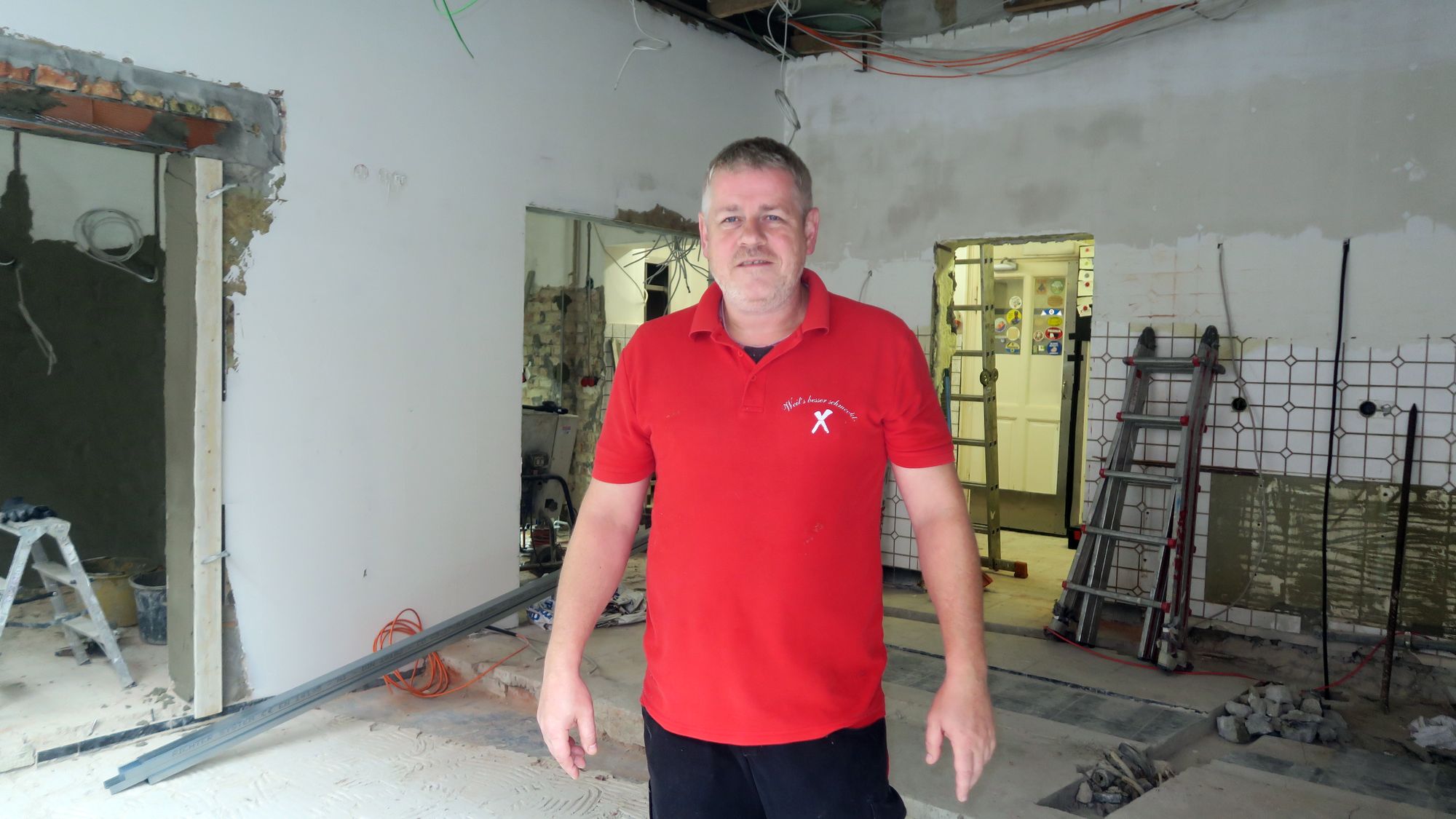 Sven Creutz auf beiden Bildern im roten T-Shirt