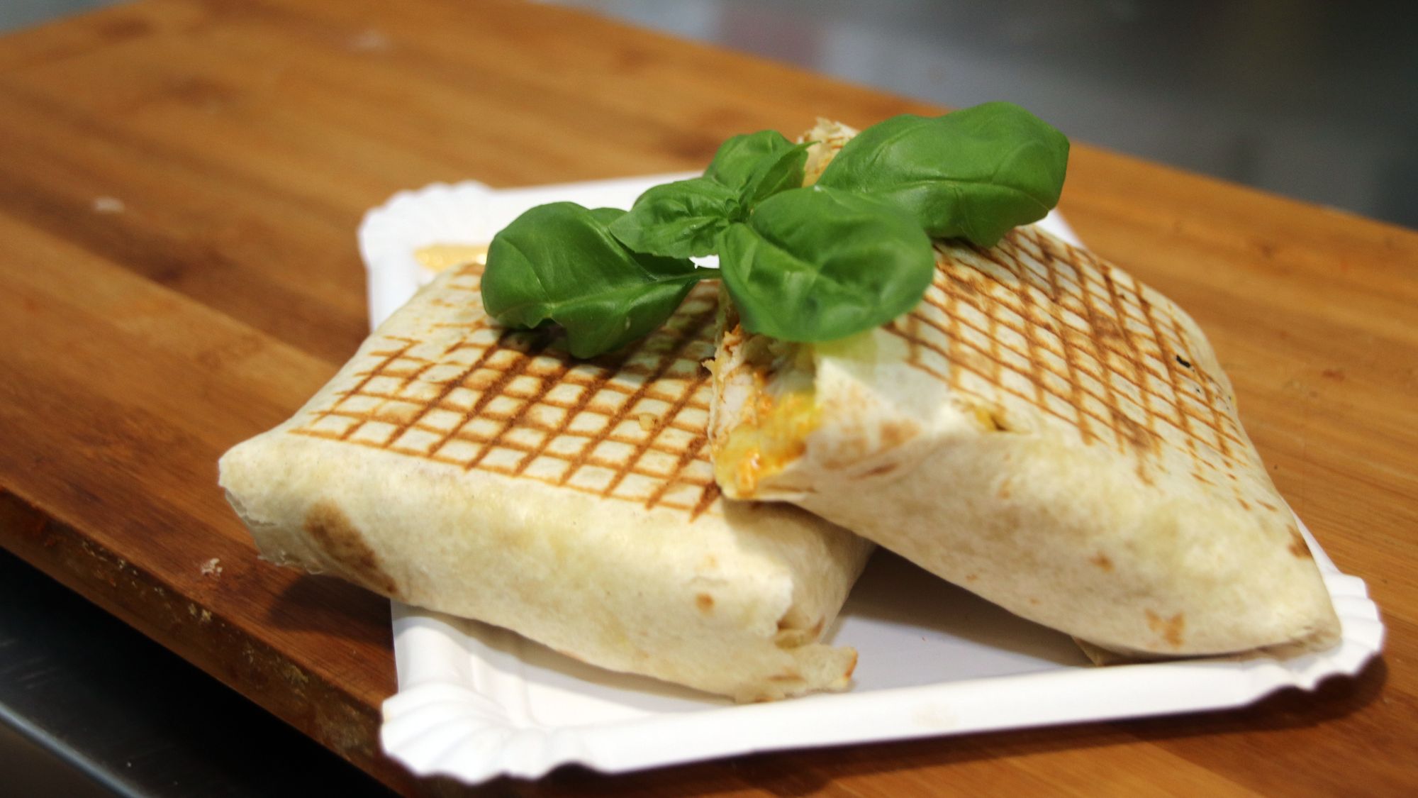 Ahmed füllt das hauchdünne Fladenbrot.Bei Ahmed und Ahmed ist es ein bisschen anders. Zwar haben sie auch dünnes Fladenbrot, aber sie nutzen die türkische Variante, das „Dürüm Ekmeği“ als Grundlage. Gefüllt wird das Brot dann mit Hähnchenbrust-Stücken, Hackfleisch oder Sucuk, einer scharf gewürzten Rohwurst. Es gibt auch eine vegetarische Variante mit Zucchini, Aubergine und Paprika. Allen „Tacos“ gemein ist eine Käsesoße und eine Würzsoße – das kann eine Curry-, Barbecue- oder Honig-Senf-Mischung sein.