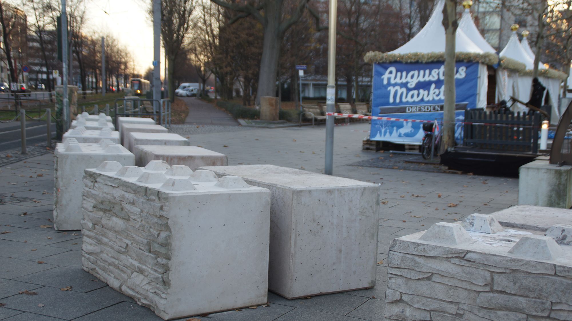 Die Stadt, Veranstalterin aller thematischen Weihnachtsmärkte in Dresden, umsäumte das Markt-Areal bereits zu Beginn der Woche mit den altvertrauten Betonpollern. Sie sind ansprechender gestaltet. Sie sagen: Wir gehören jetzt dazu. Die Lego-Steine erschweren die Zulieferung, sagt Holger Zastrow und Einsatzfahrzeuge müssen im Ernstfall auf die Gehwege ausweichen. Im dichten Gedrängel kann es schon mal vorkommen, dass man unverhofft gegen die Lego-Steine prallt. Sicherheit kann weh tun. Aber Sicherheit ist das wichtigste Gefühl, wenn es zur totalen Besinnlichkeit kommen soll.