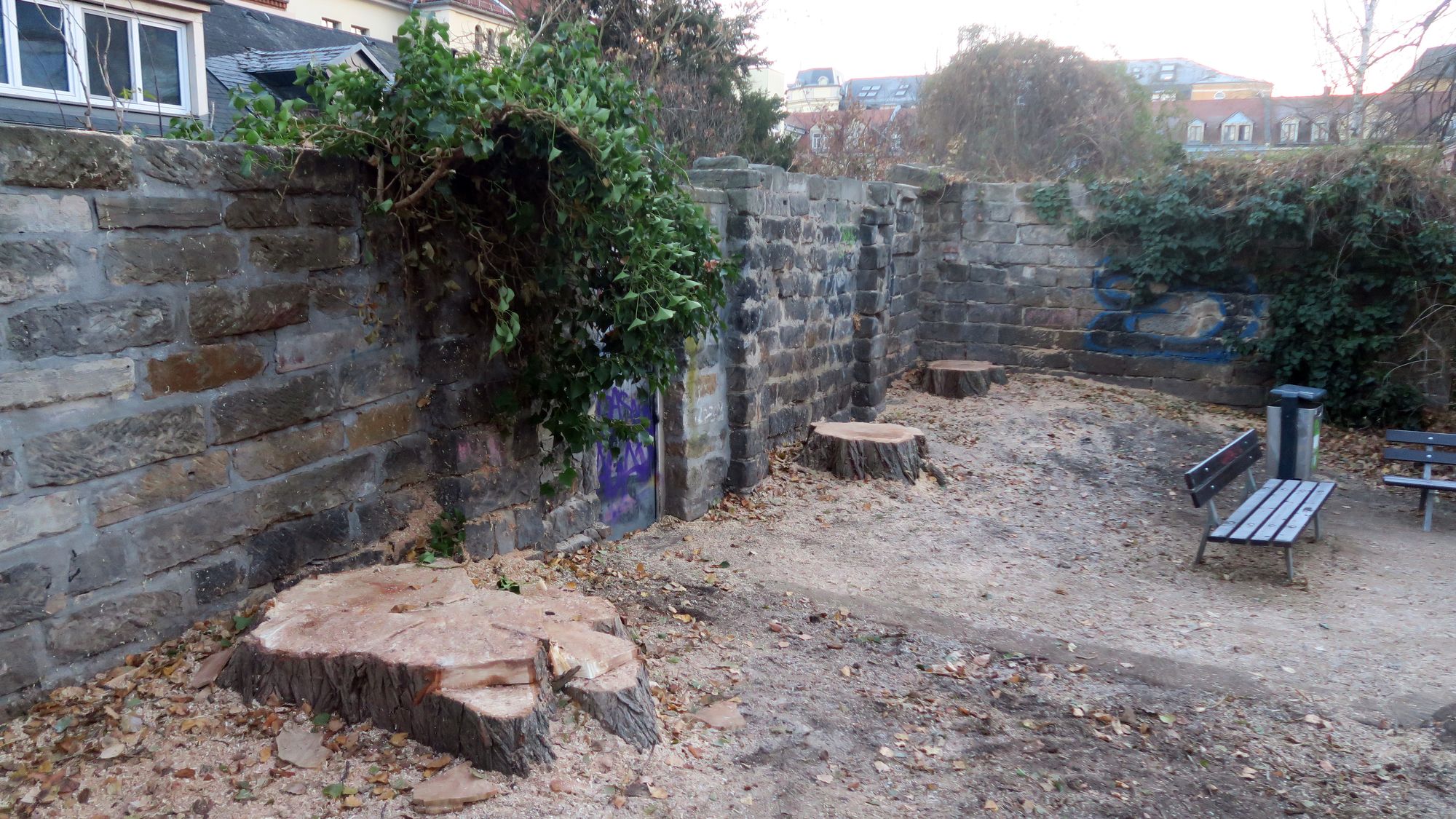 Ach, einfach nur traurig. war da auch mit meinen Kindern, als sie noch klein waren, öfter mal, weil es einfach eine schöne besondere und romantische kleine Nische in der Neustadt war. Hätte man da nicht einfach nur ein paar gefährdete Äste entfernen können? Aber nein, zack, sind einfach mal gleich alle 3 Bäume auf einmal weggeholzt, ist für ein Amt natürlich leichter und schneller erledigt, als die Sache vlt. etwas sensibler und mit mehr Respekt vor solch gewachsenen alten Bäumen zu prüfen. Passiert besonders in Dresden aber öfter mal, dass da eher sehr technokratisch und ohne jeglichen Sinn für sensible Naturräume vorgegangen wird. Ich dachte eigentlich immer, dass in einem Amt für Stadtgrün auch Leute arbeiten, die sich sogar für den Erhalt so schöner Naturräume einsetzen, aber hier scheinen viele Stellen (sicher nicht alle) eher mit Abfallwirtschaftern oder Motörjörgs besetzt zu sein, sehr bedauerlich. Vielleicht waren die Bäume auch einfach nur wieder irgendeinem Anwohner mit Beziehungen zum Amt zu sehr in der Sonne oder jemand brauchte billiges Kaminholz, keine Ahnung, das wäre natürlich noch abstoßender.