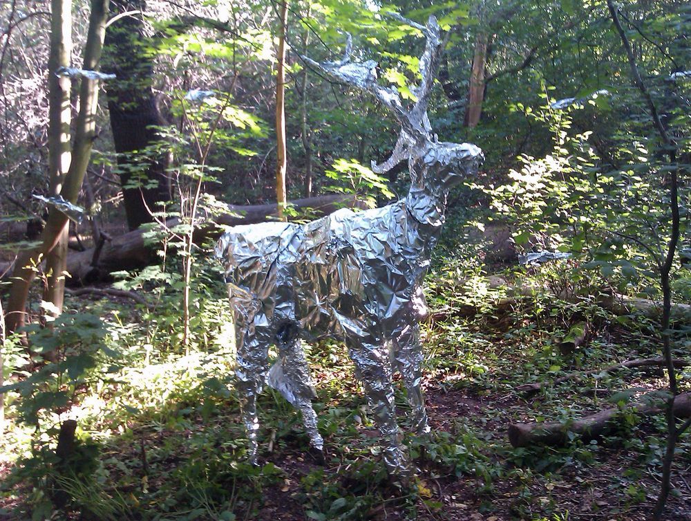 Vermutlich ist der Hirsch in der Heide nur die Antwort auf den schon etwas älteren Hinterhofhirsch an der Böhmischen Straße.