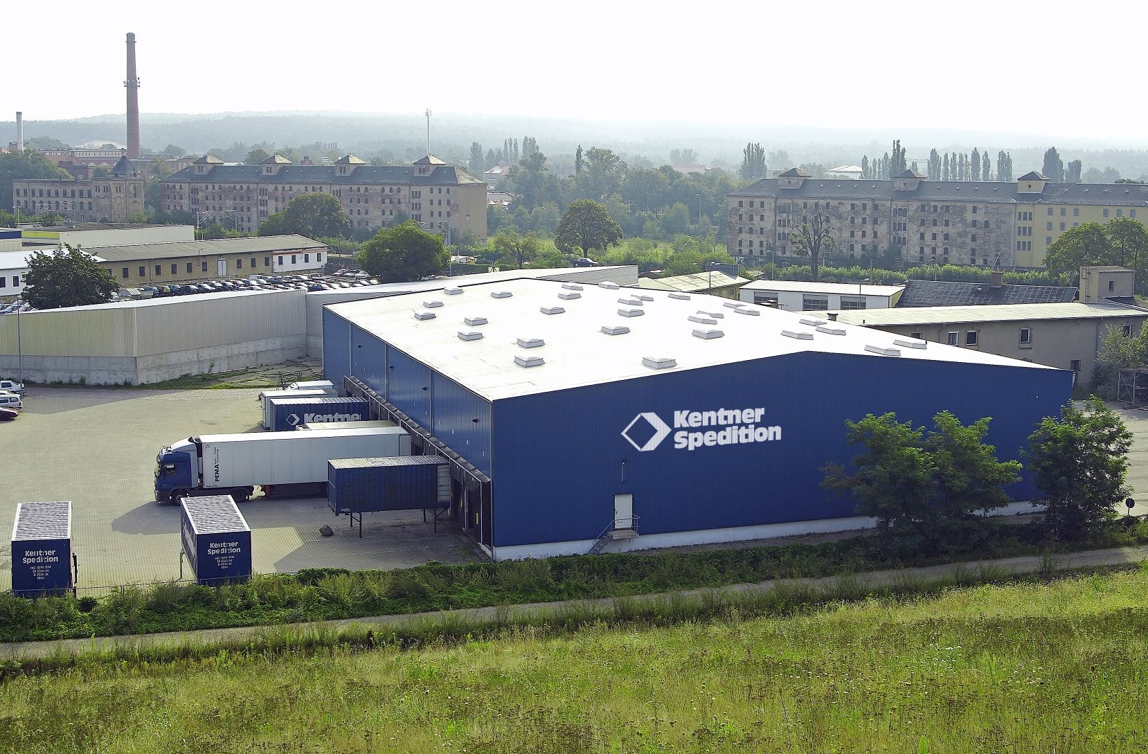 Dresdner Transport Service KENTNER Spedition GmbH an der MagazinstraßeDas Firmengelände an der Magazinstraße gliedert sich in die Verwaltung und eine riesige Lagerhalle. Mehr als 20 Laster sind dauernd für den Logistiker unterwegs. Die Adresse hier im Dresdner Norden ist der Umschlagplatz. Insgesamt 36 Mitarbeiter sind hier beschäftigt. Das sind vor allem Kraftfahrer, Lagerlogistiker und Speditionskaufleute.