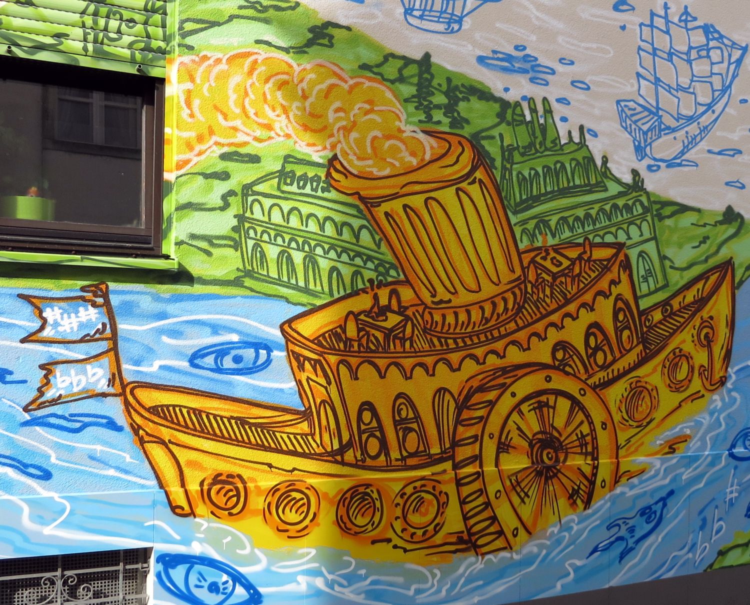 Seit Anfang Oktober schmückt sich das Haus auf der Böhmischen Straße mit einem wunderbaren Fluss. Der wird von Noten, Musikinstrumenten