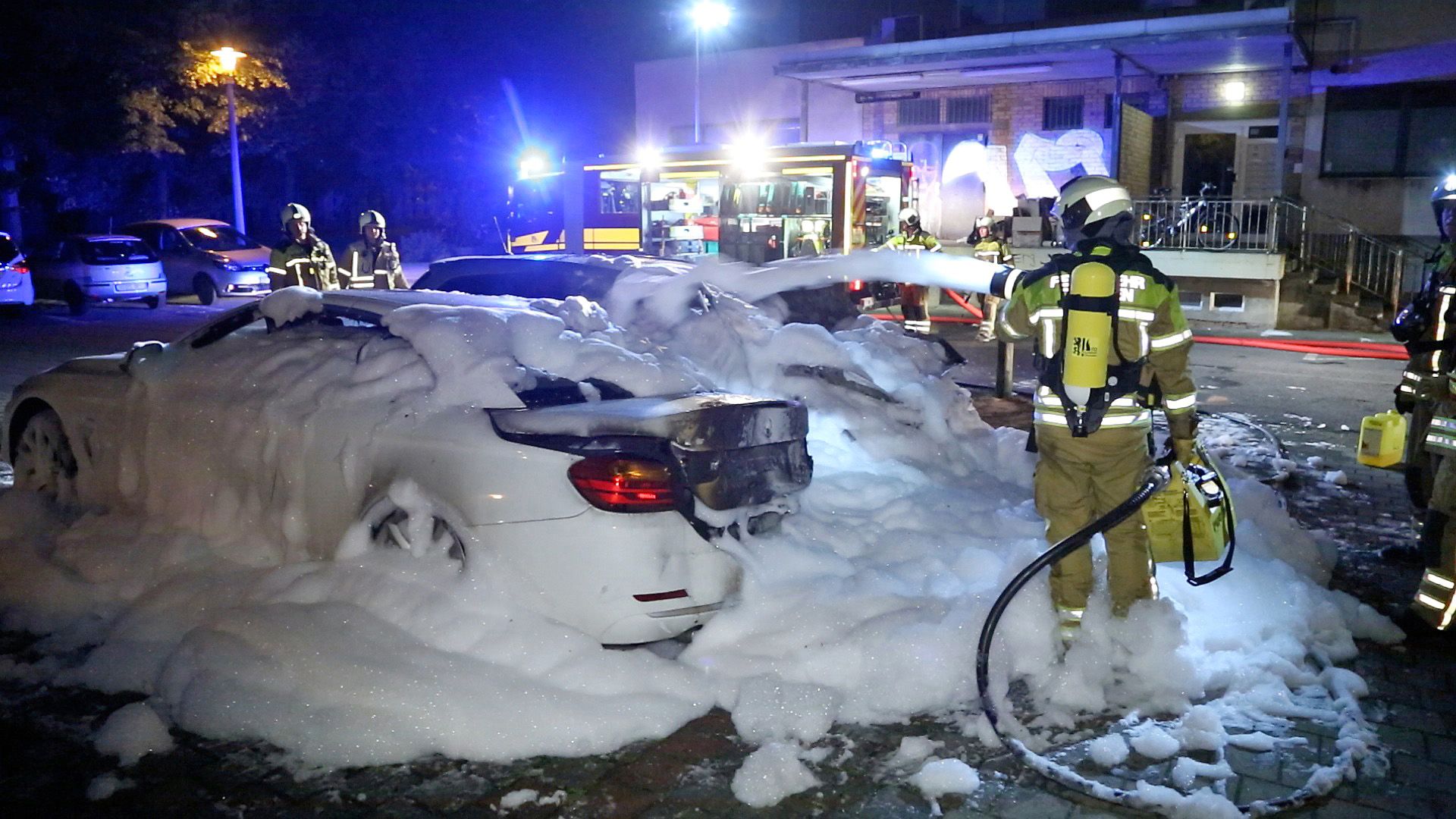 Heute am frühen Morgen, gegen 3.30 Uhr, hat in einer Tiefgarage an der Johann-Meyer-Straße im Hecht-Viertel ein Auto gebrannt. Als