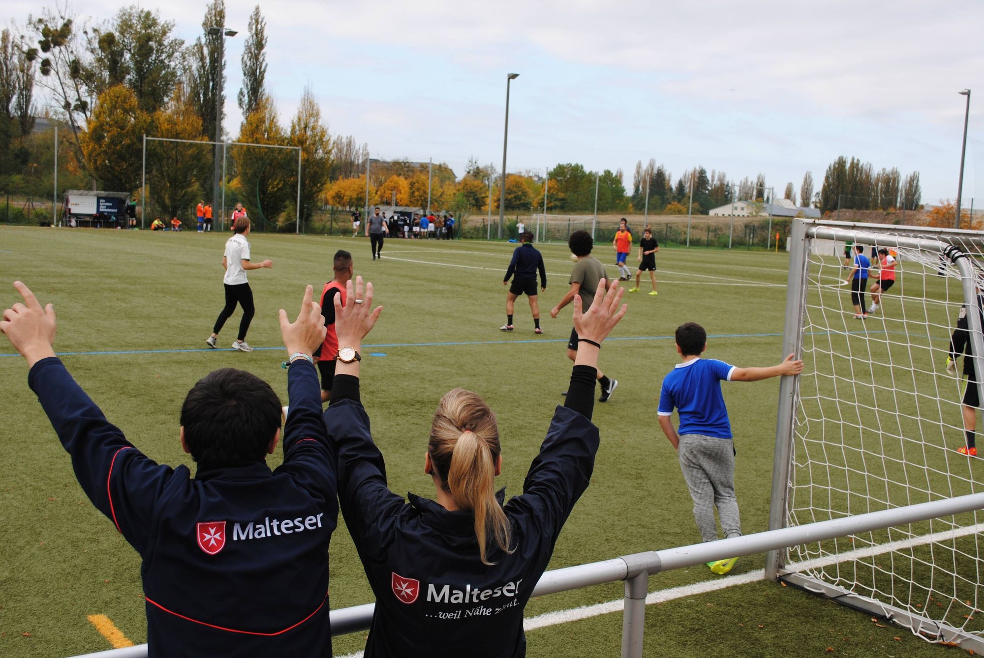 Zehn Jungs stehen sich gegenüber. Startsignal. Alle rennen los, knallen aneinander, die ersten fallen um, rappeln sich wieder auf, stoßen