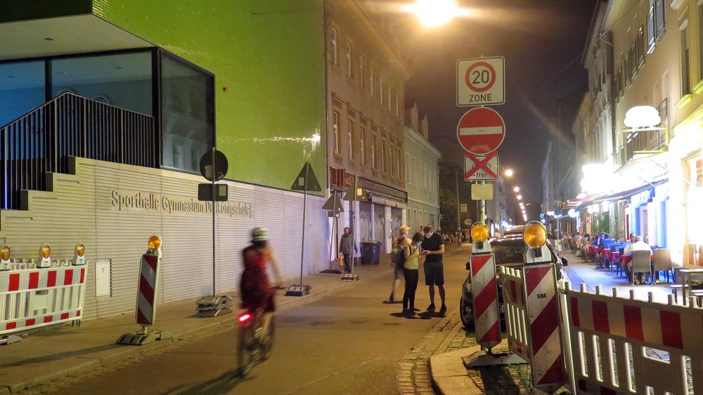 Mit der Einrichtung der Baustelle am Scheunevorplatz wurden auch ein paar Verkehrsschilder errichtet. Die Alaunstraße darf nun von der Louisenstraße