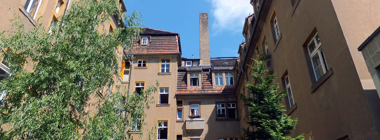 Frühling sprießt im Hof an der Prießnitzstraße im Februar 2026